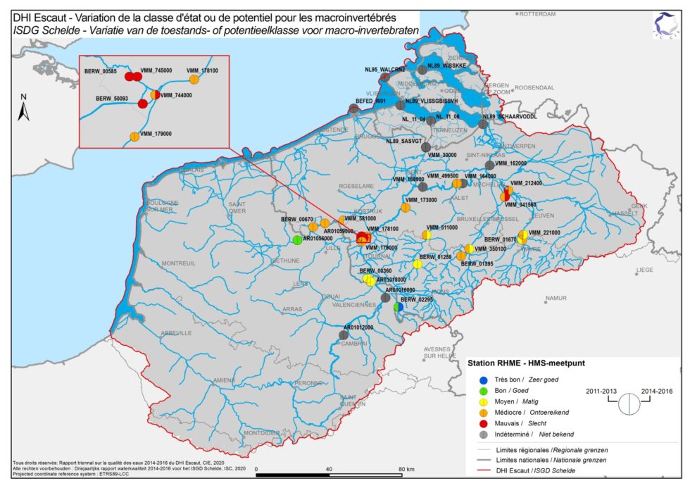 Variatie van de toestands- of potentieelklasse voor macro-invertebraten (2011-2016)