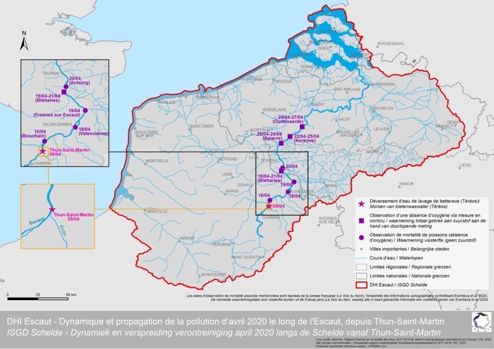 Dynamique et propagation de la pollutio d’avril 2020 le long de l’Escaut, depuis Thun-Saint-Martin